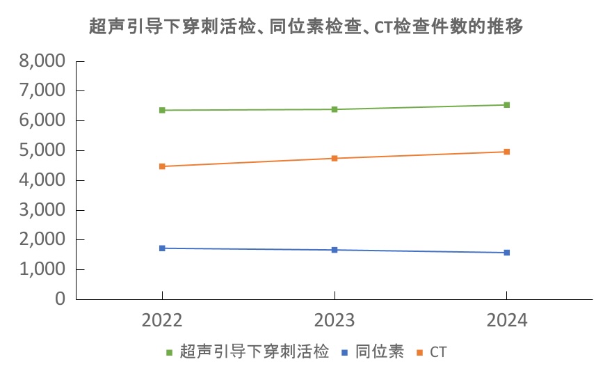 | 年度 | 超声波(B超) | 超声引导下穿刺活检 | 同位素 | CT |